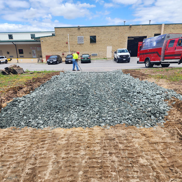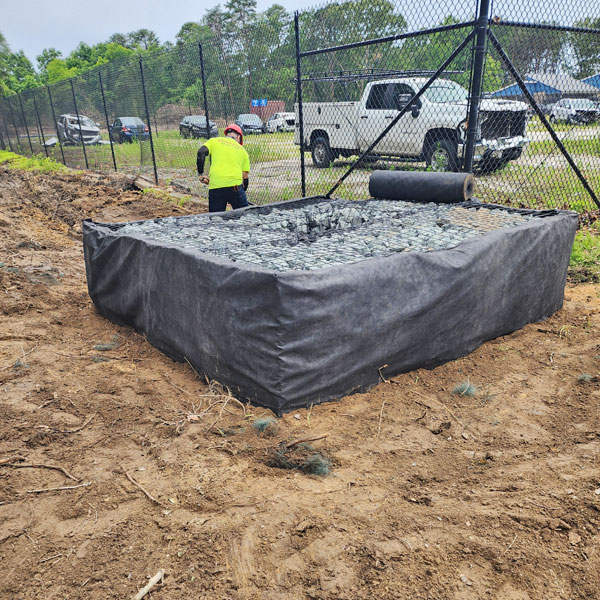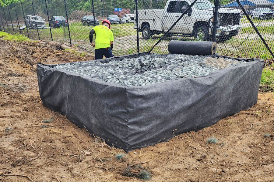 Our scope of work on the project includes grading and installing a new impound lot, mitigating the existing stormwater management pond, putting in a new storm drainage system, and installing five micro-bioretention ponds.